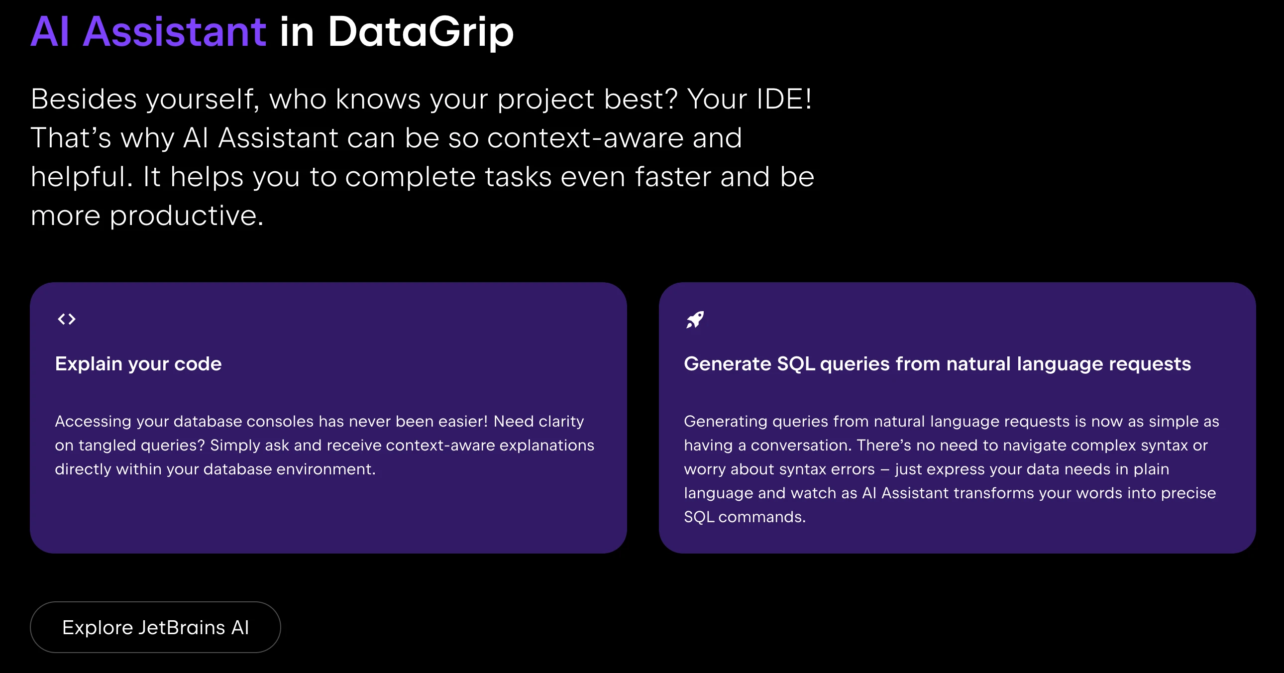 The DataGrip AI Assistant can: